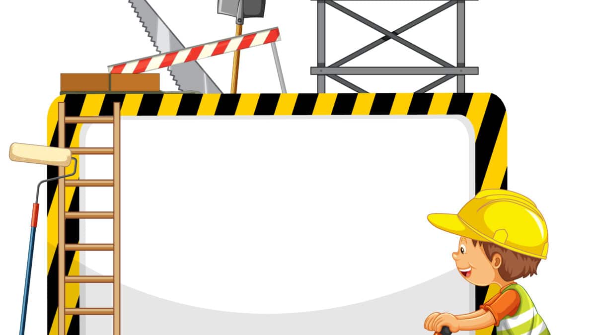 Empty banner with construction objects and elements illustration